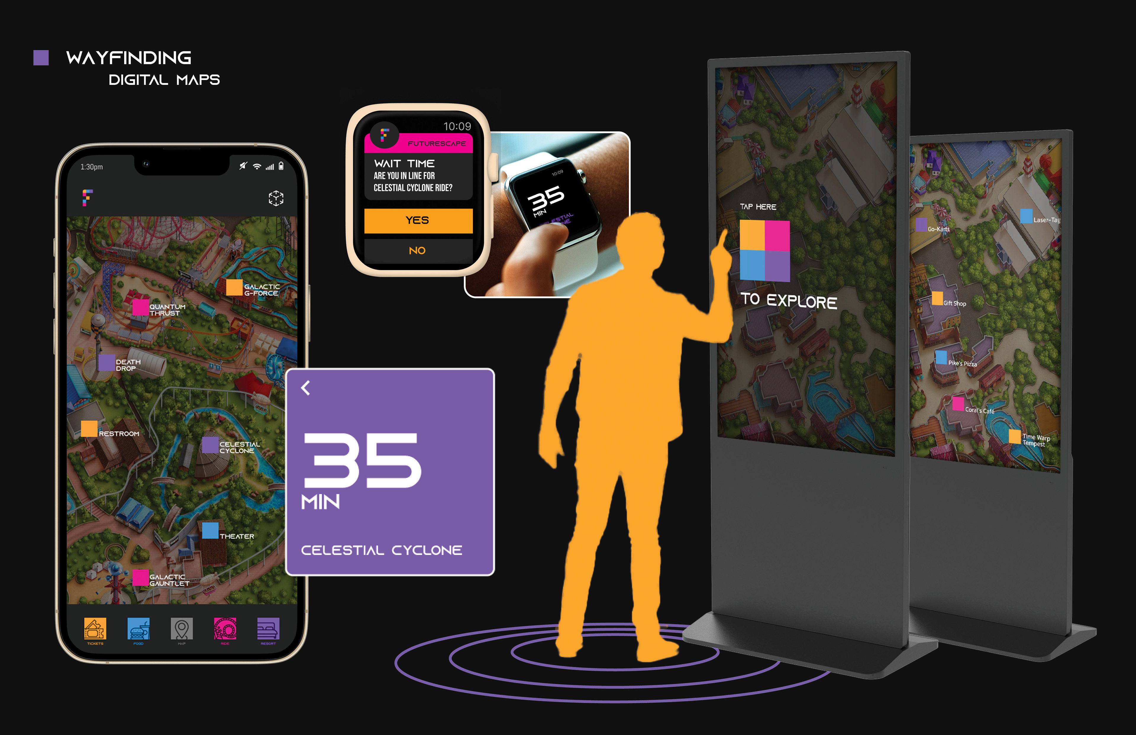 Digital interactions at Futurescape amusement park.